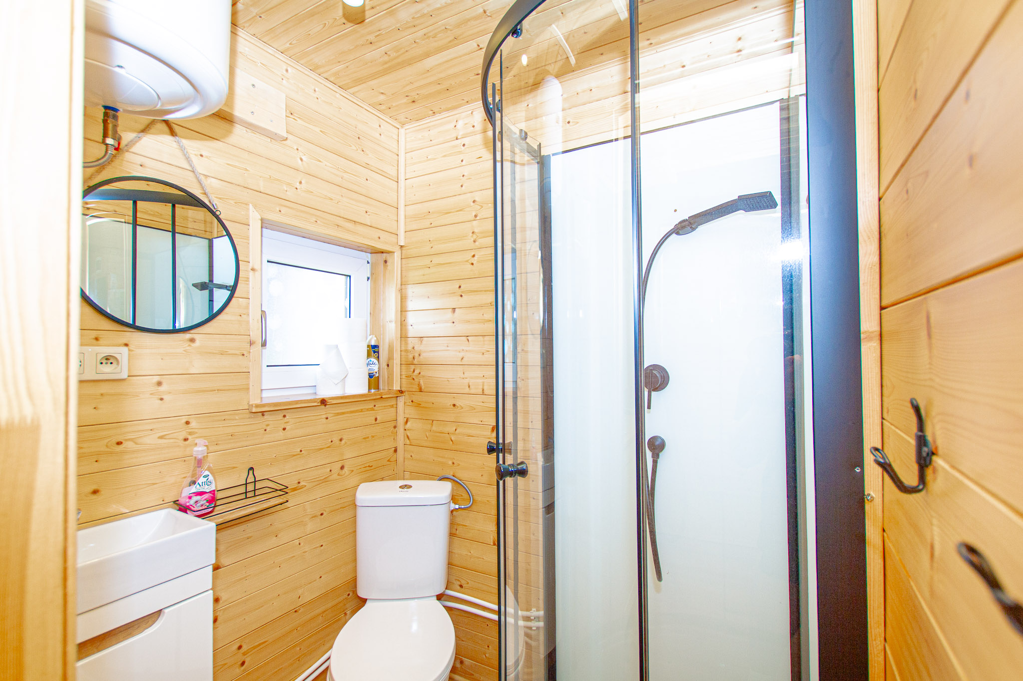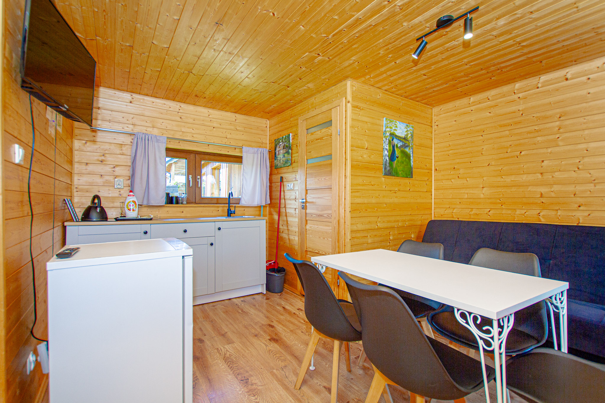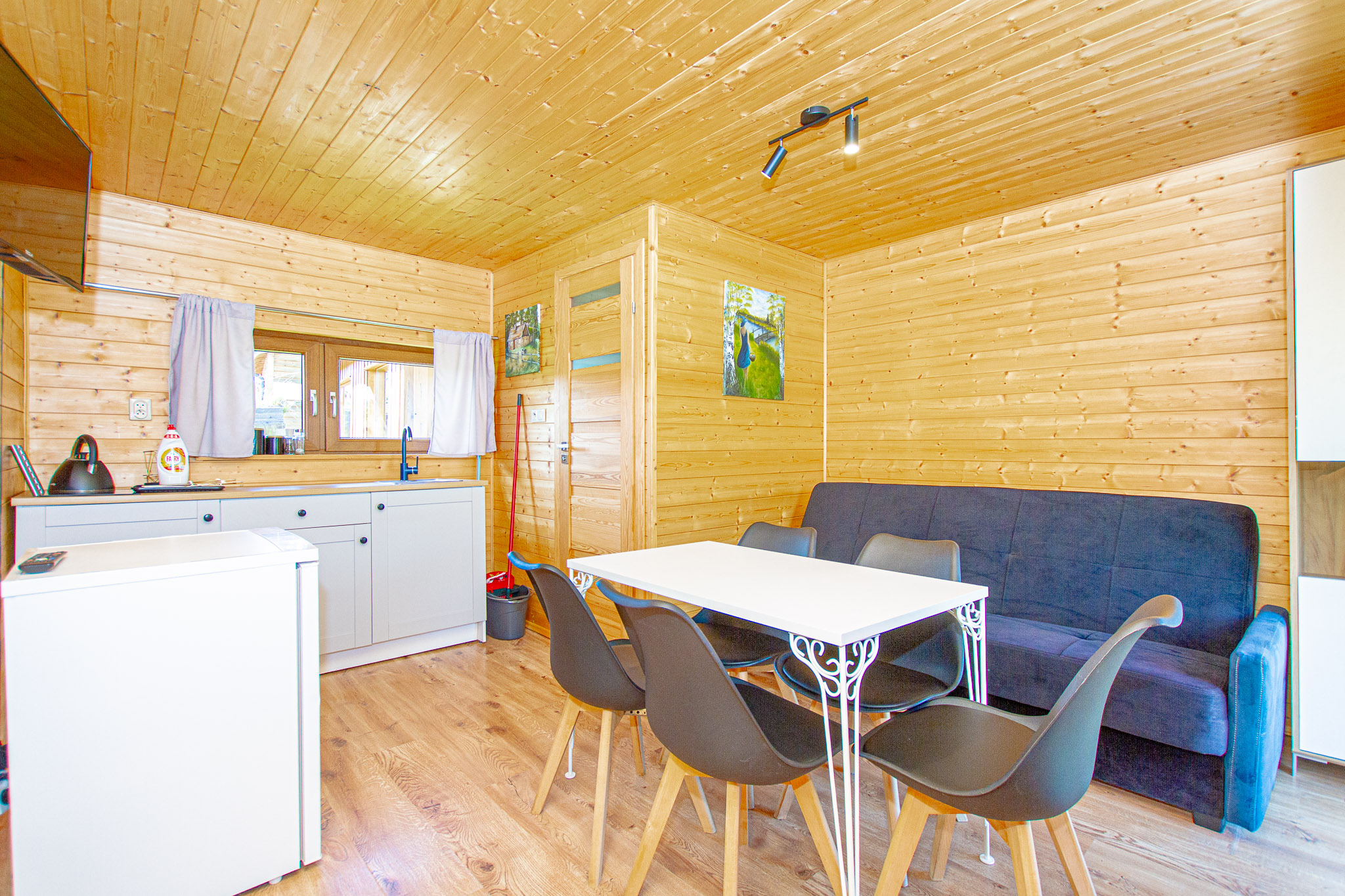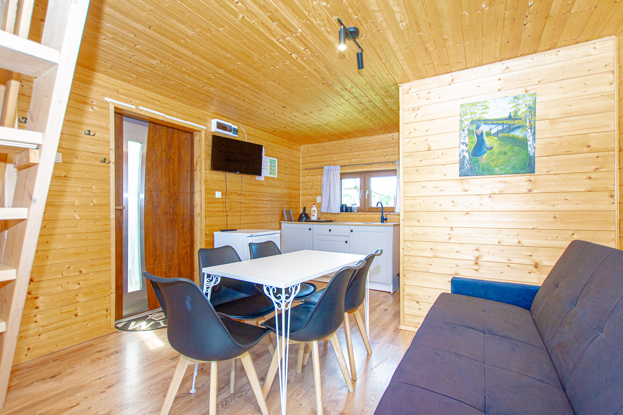 przytulne, drewniane wnętrze dla do 5 osób,