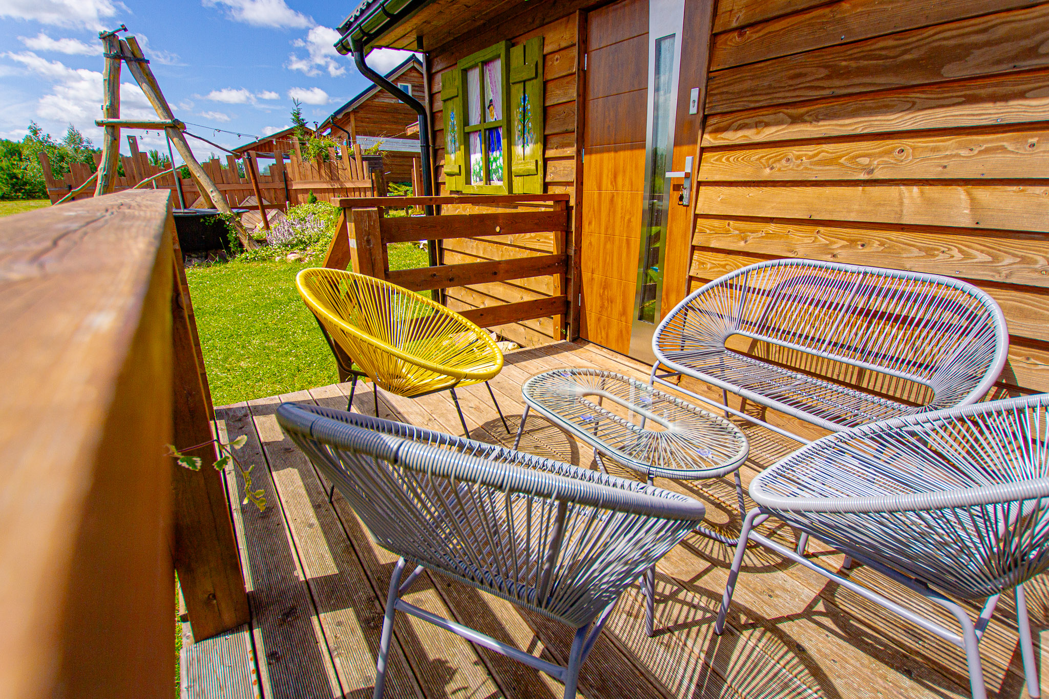 Jacuzzi współdzielone z sąsiednim domkiem – ciepło, bąbelki i relaks na wyciągnięcie ręki.
