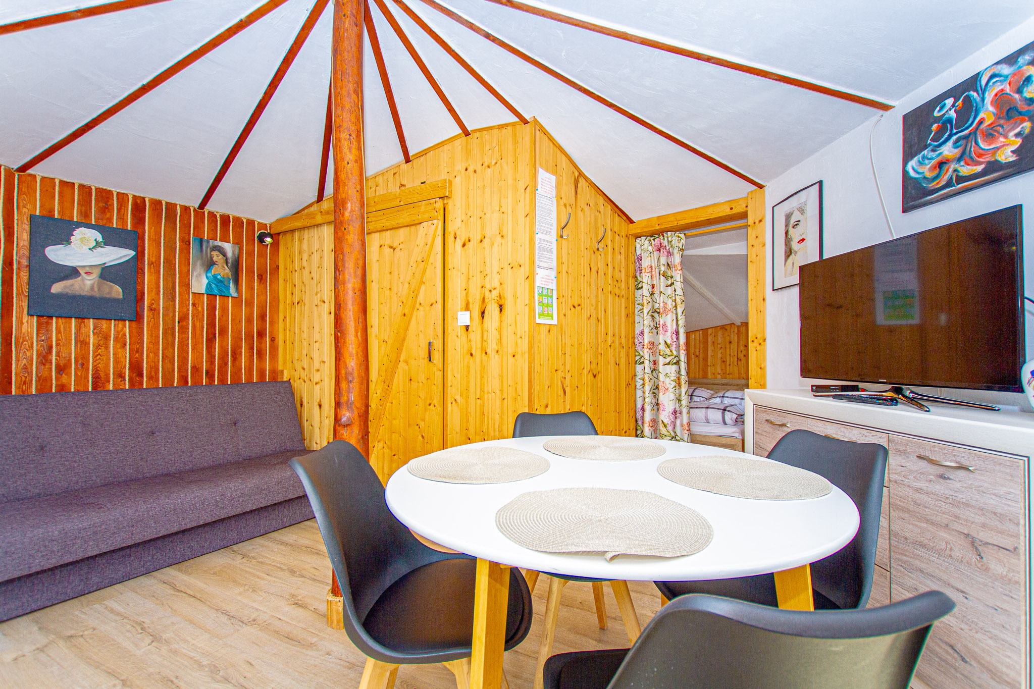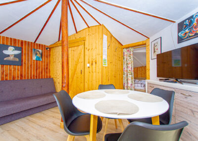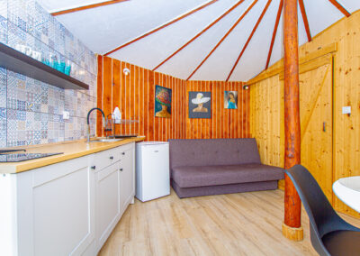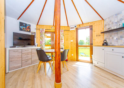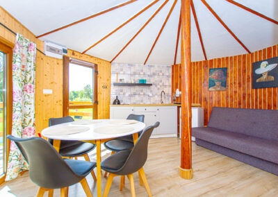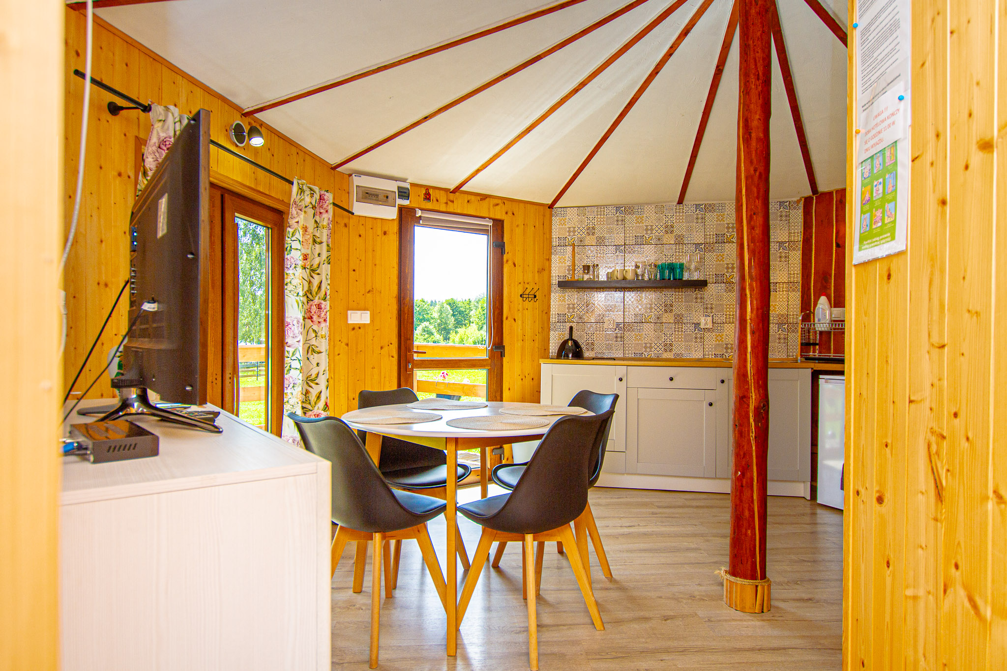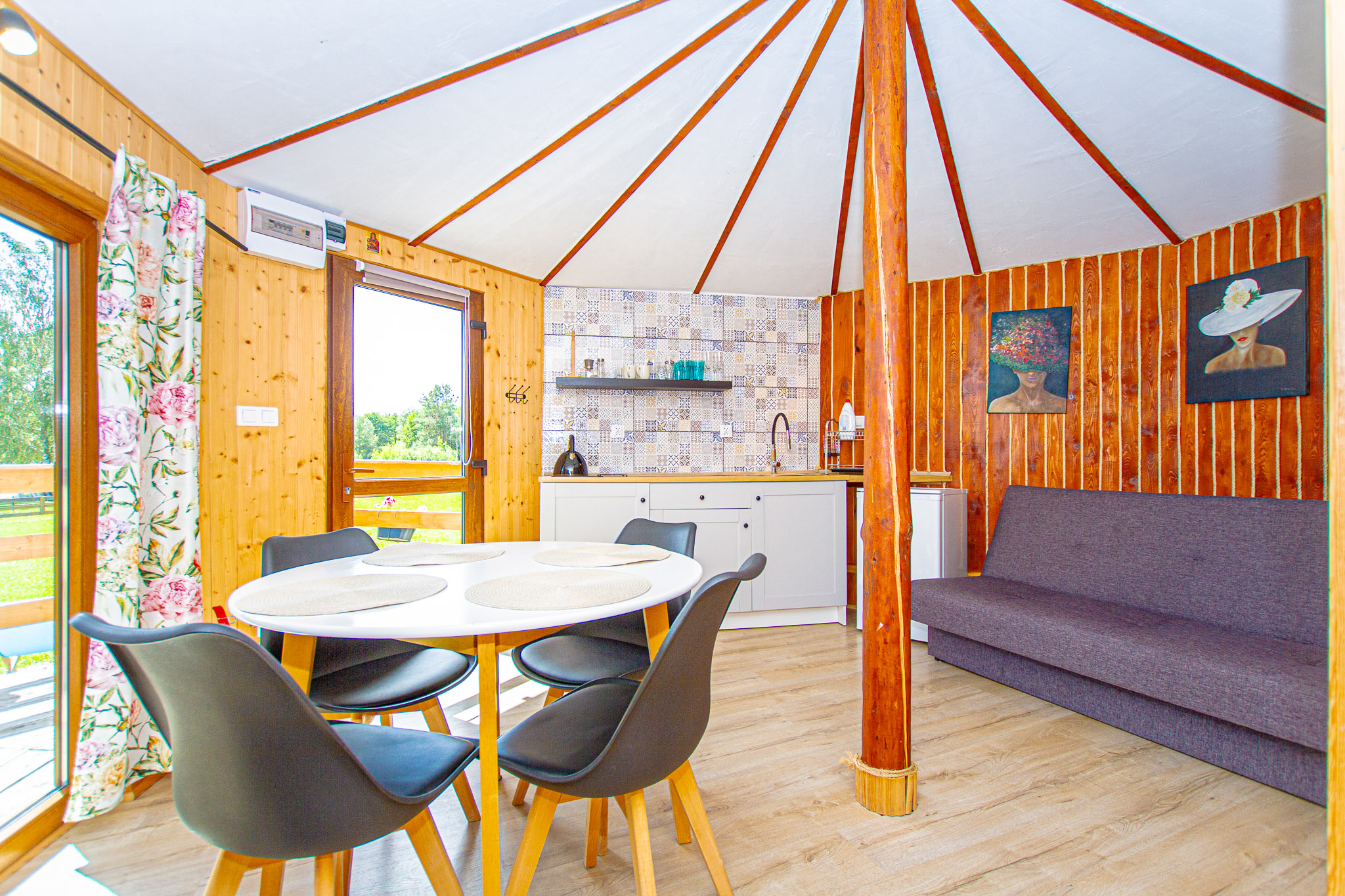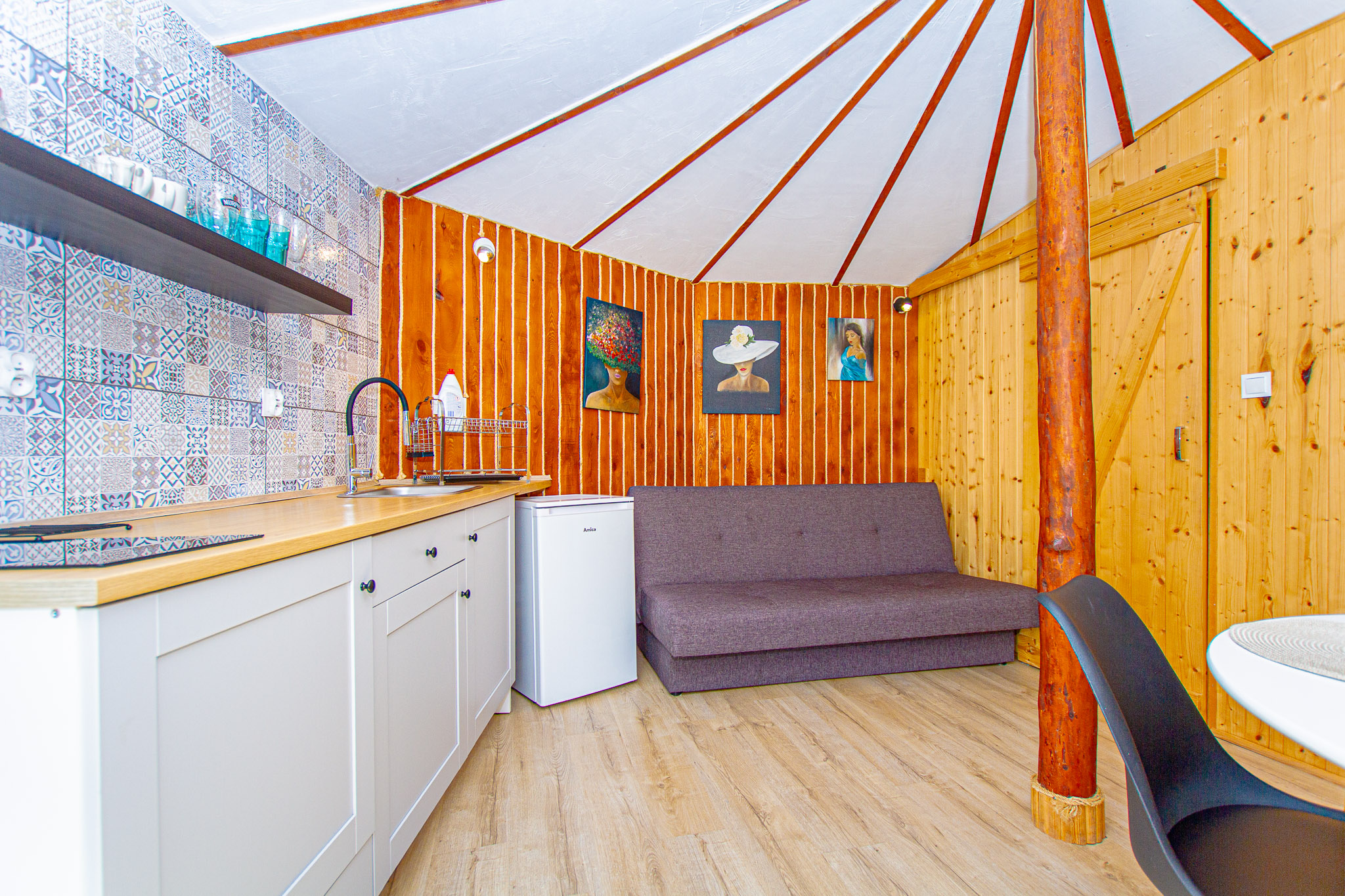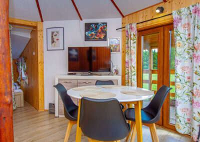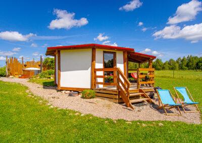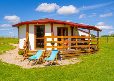 Ten domek to prawdziwa perełka. Okrągły, ciepły, z charakterem – jak serce babci i spokój dziadka. „Przystań Babci i Dziadka” to miejsce, które otula. Tu wszystko zwalnia – nie ma pośpiechu, są za to rozmowy, śmiech i cisza natury.