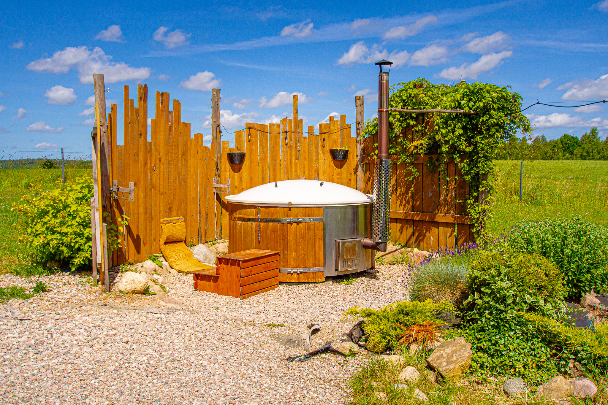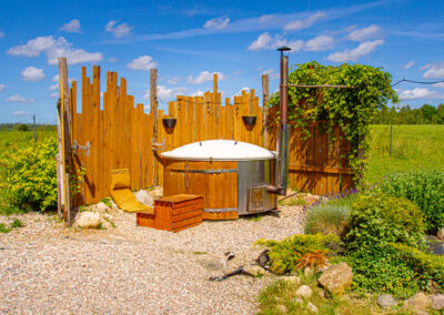 Beczka z jacuzzi – współdzielona z jednym domkiem, ciepła, przyjemna i pełna relaksu.